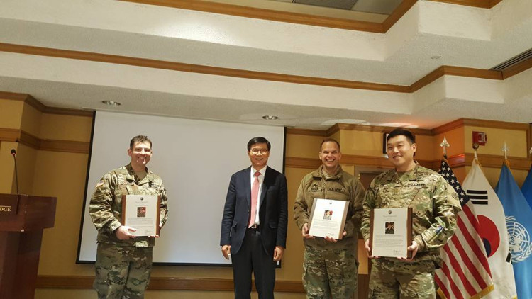 지난 4년 간 미팔군 드래곤 호텔에서 개최한 카두사 신년회에 참석하였는데.. 서로 알지 못해서 인사도 못했는데.. 작년 초 부터 서로를 알게되었는데. 한국을 떠나는 해에 공식으로 같은 장소에서 만찬..저희가 한국 국방을 위한 감사로 감사패로 전달했죠..