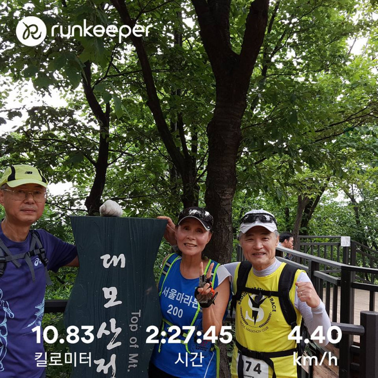 전날 반달 스탭진과 설악산 등정 후 2시간 10분 주자인 박민자님, 백태식님 이준형님, 양범식님 과 같이 구룡산과 대모산 정상까지 트레일런..